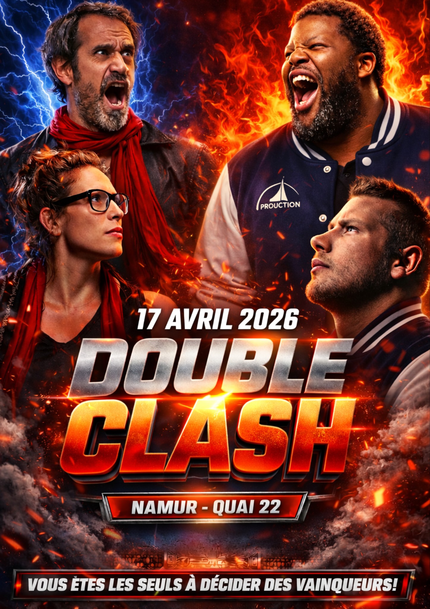 Le clash que tout le monde attend ! Un 2 vs 2 en bataille royale sur des thèmes d'improvisation et une musique déchainée. Un arbitre qui n'a pas peur de prendre des coups. Du catch ? De l'UFC? Non, c'est encore mieux... C'est Double Clash d'impro !